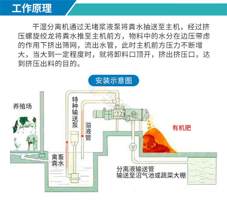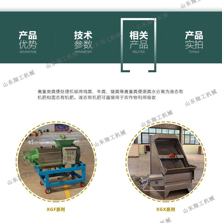 該系列雞糞脫水機具有體積小、轉(zhuǎn)速低、操作簡單、安裝、維修方便、費用省、效率高、投資回收快,不需添加任何絮凝劑等特點;該機采用的螺旋軸、篩網(wǎng)為不銹鋼制作;禽畜類糞便處理機能將雞糞、牛糞、豬糞等禽畜糞便原糞水分離為液態(tài)有機肥和固態(tài)有機肥;液態(tài)有機肥可直接用于農(nóng)作物利用吸收;固態(tài)有機肥可運到缺肥地區(qū)使用,也可起到改觀土壤結(jié)構(gòu)的作用,同時經(jīng)過處理可制成有機復(fù)合肥。