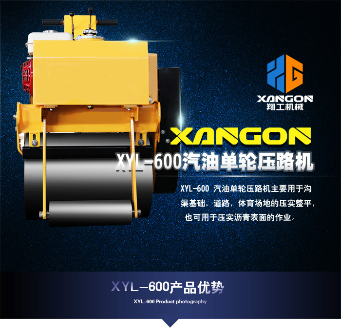XYL-600 汽油單輪壓路機主要用于溝渠基礎,道路,體育場地的壓實整平, 也可用于壓實瀝青表面的作業(yè)。