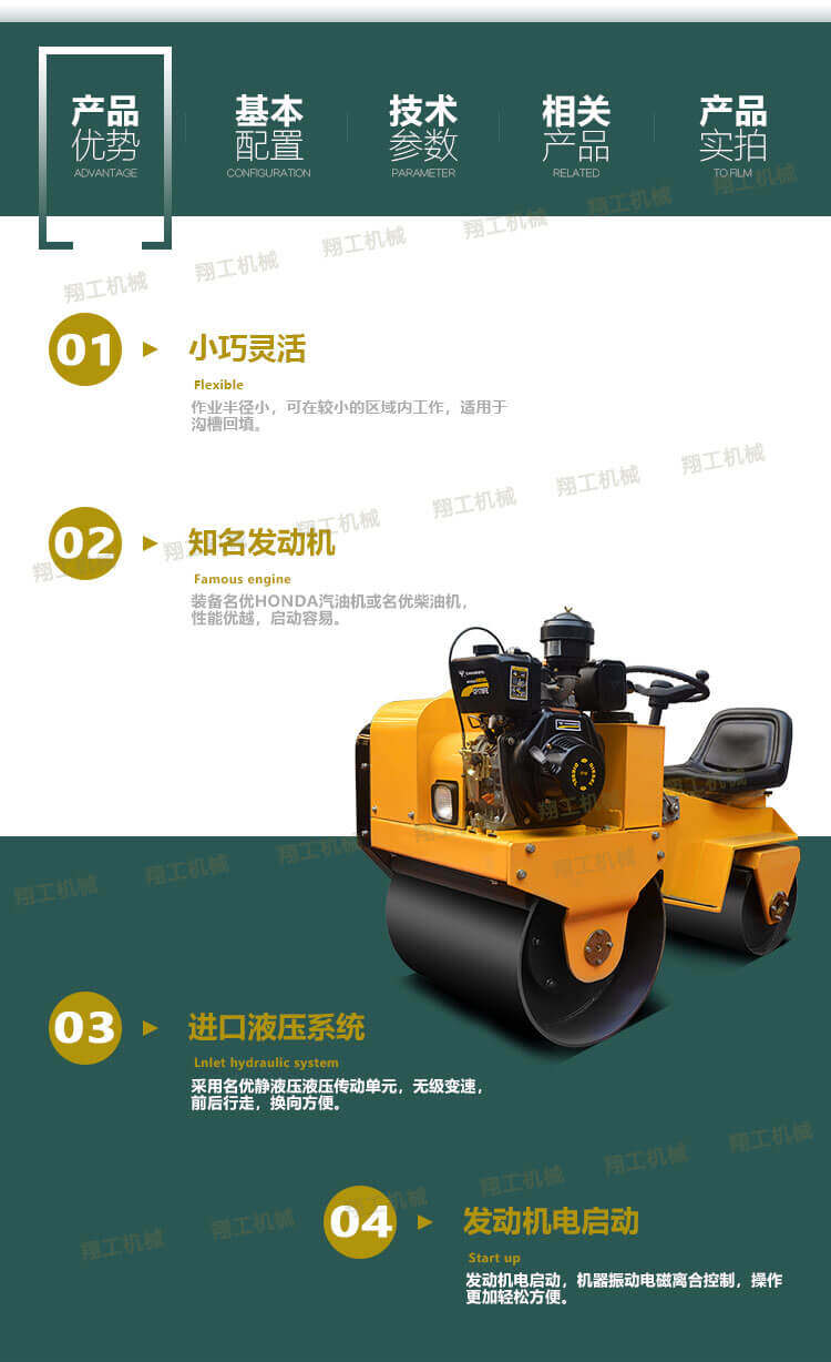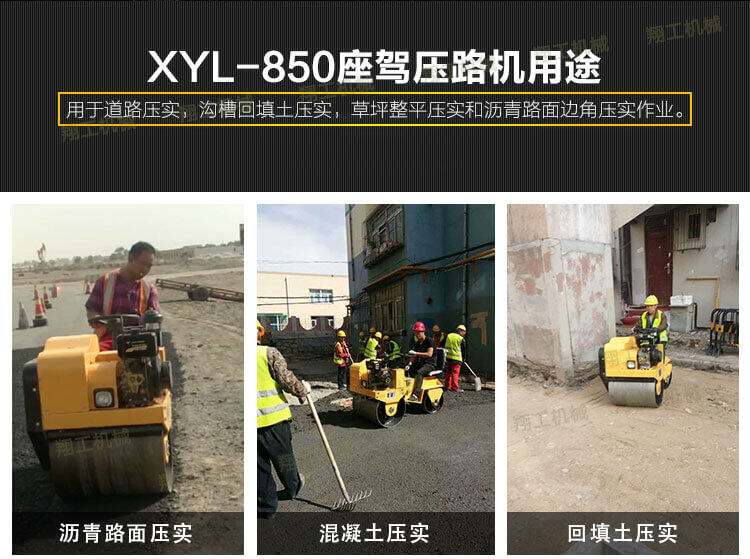 850小型座駕壓路機(jī)其結(jié)構(gòu)緊湊,操作靈活,振動力強(qiáng)大廣泛應(yīng)用于狹長道路壓實(shí),溝槽回填土壓實(shí),草坪整平壓實(shí)和瀝青路面邊角壓實(shí)作業(yè)。
