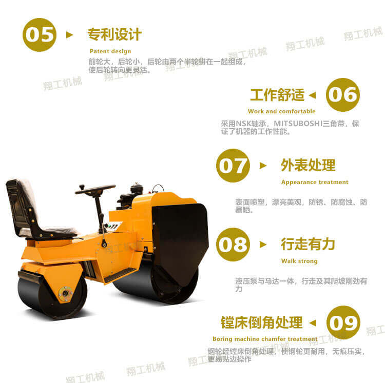 山東翔工XYL-850座駕壓路機(jī)=無縫鋼輪 進(jìn)口軸承(軸承決定壽命) 原裝進(jìn)口美國丹弗斯液壓系統(tǒng) 加黃油的黃油孔 常發(fā)6馬力風(fēng)冷柴油機(jī) 無極變速 2t壓實(shí)力 電磁離合振動 單獨(dú)的震動按鈕 前進(jìn)后退手柄 可靜碾可震動 鋼輪采用鏜床技術(shù)(故障率更低)。