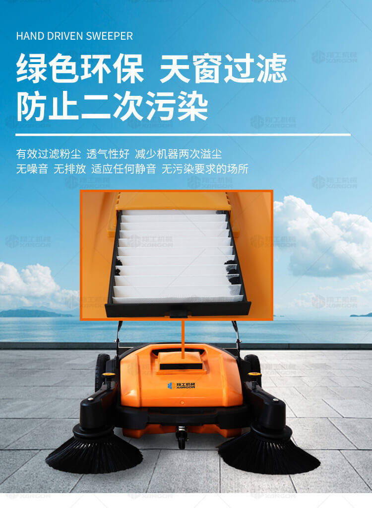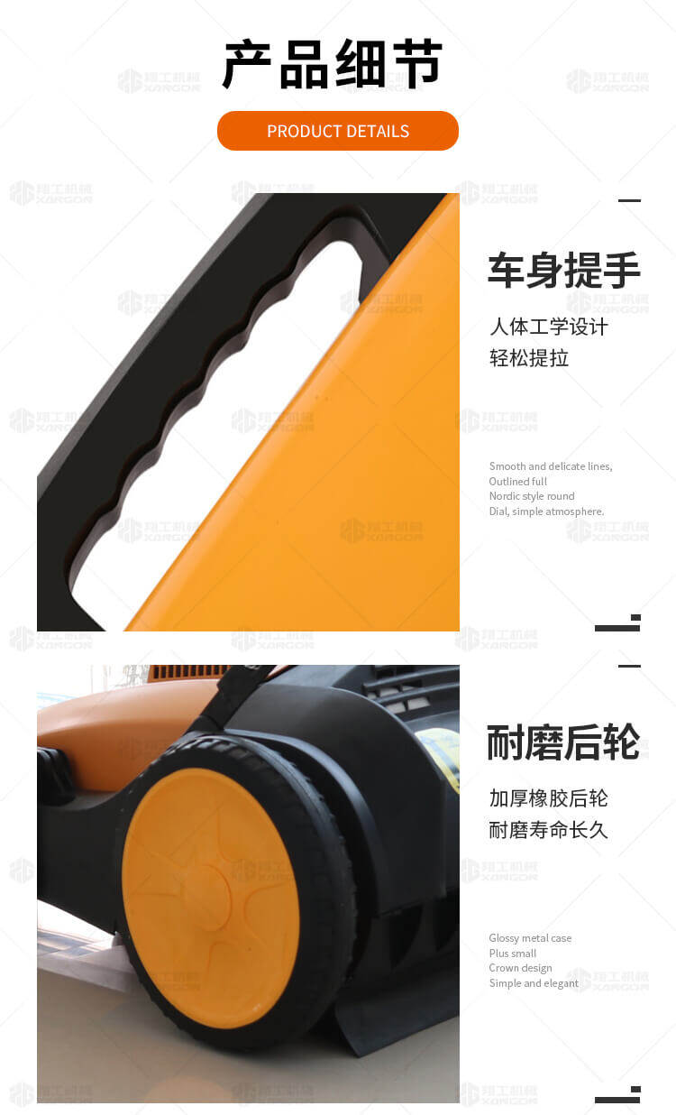 手推式掃地機(jī)能清潔房屋周邊范圍:包括小路,公路,車(chē)道和院子,能比用普通的掃把和簸箕節(jié)省5倍的時(shí)間,清掃時(shí)垃圾被迅速的收集到塵箱,簡(jiǎn)單、快速、干凈。