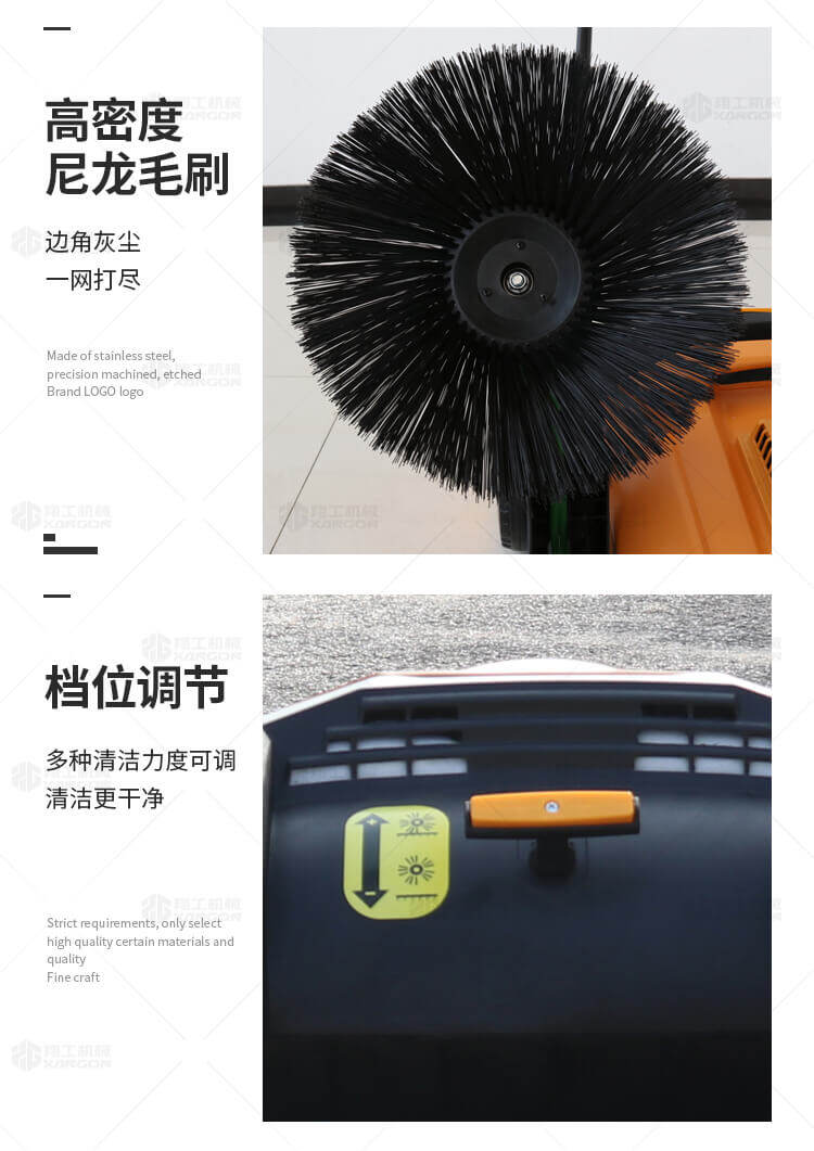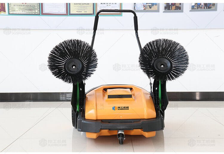 手推式掃地機(jī)設(shè)計(jì)精巧、技術(shù)獨(dú)特,工作方式采用無(wú)動(dòng)力傳動(dòng),依靠機(jī)身雙輪的摩擦帶動(dòng)毛刷運(yùn)轉(zhuǎn),只需推著步行便可將垃圾輕松回收到垃圾箱毛刷可根據(jù)地面以及垃圾情況,隨時(shí)進(jìn)行高度調(diào)節(jié),使之達(dá)到很低的無(wú)功損耗和很好的清掃效果。