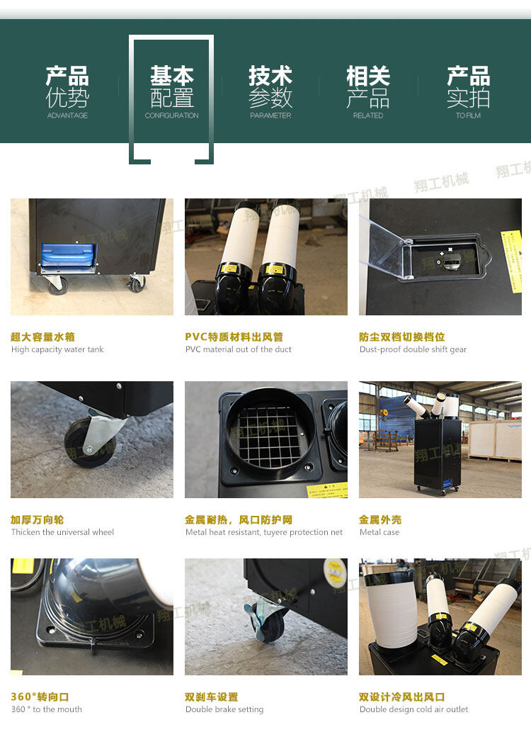 工業(yè)移動(dòng)式冷風(fēng)機(jī)適用于各類(lèi)大空間場(chǎng)所,局部降溫快。 倉(cāng)庫(kù)制冷,工廠制冷,辦公制冷,機(jī)房制冷,餐廳制冷