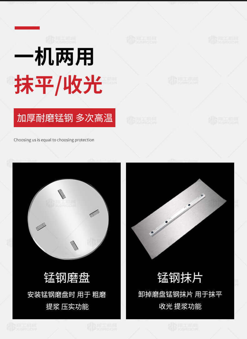 座駕式混凝土抹光機(jī)用于混凝土地面的提漿、壓實(shí)、抹平、抹光,相對(duì)于手扶式抹光機(jī),效率高。
