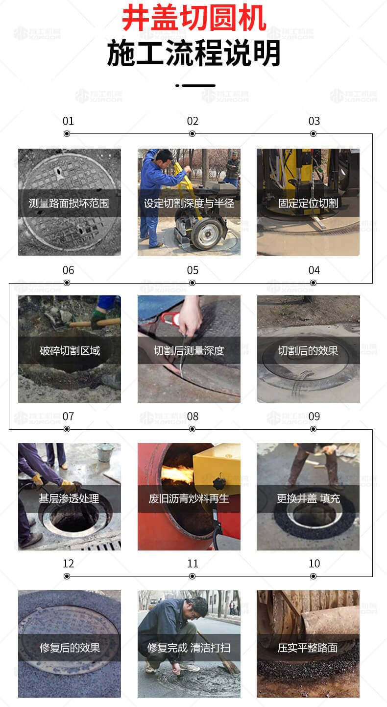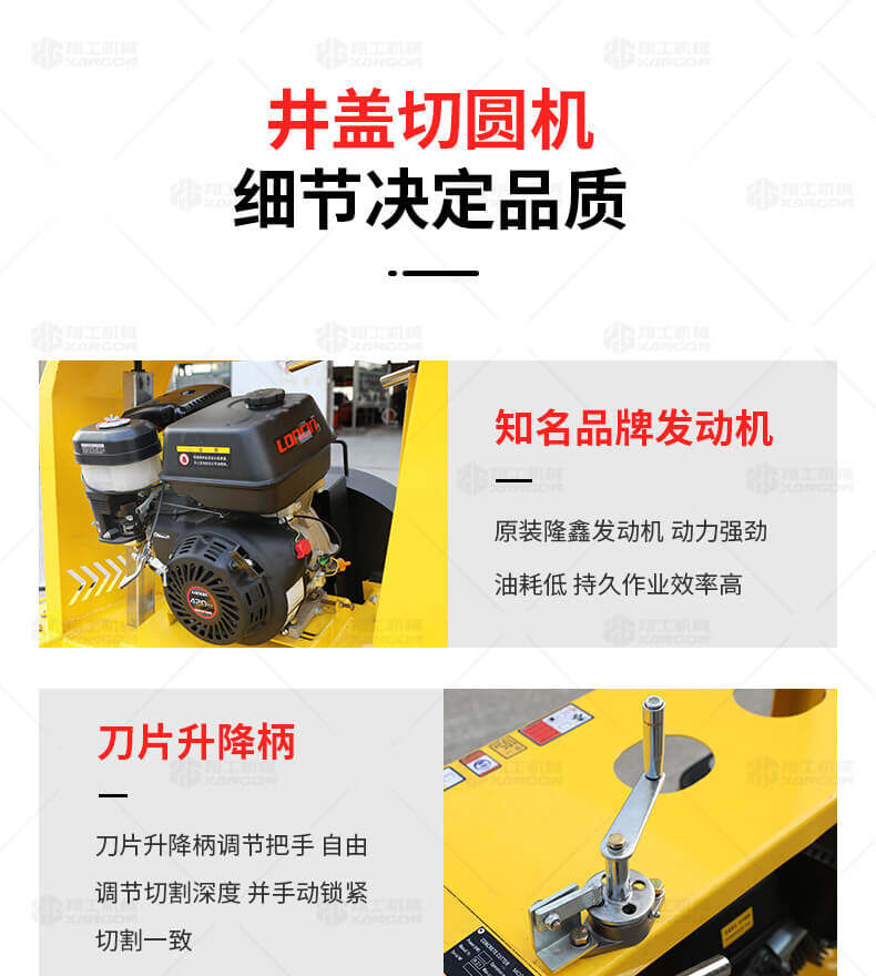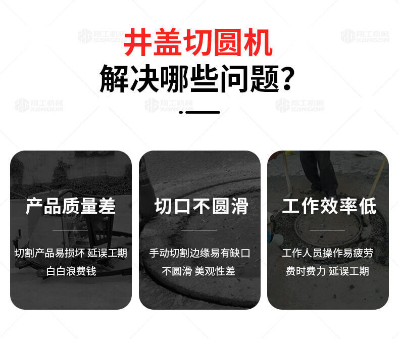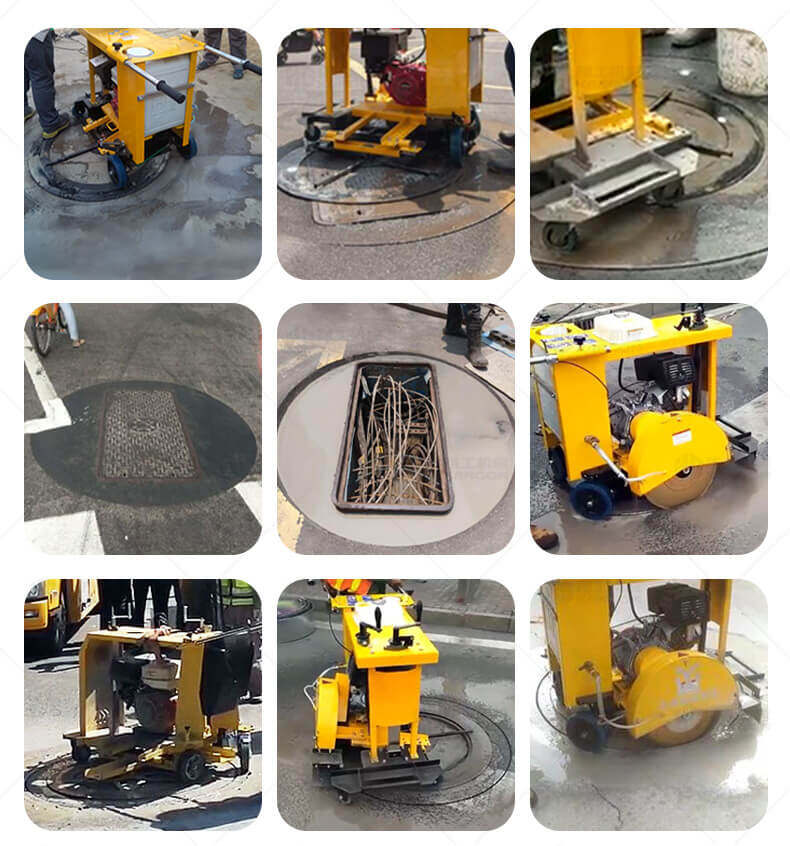 XG-1500型井蓋切割機(jī),專門用于對城市道路中機(jī)動車道等井蓋周圍的水泥混凝土或瀝青路面進(jìn)行圓形切割。為清楚井蓋周圍的破損路面提供分割區(qū)域,恢復(fù)后的地面美觀,延長了路面的使用壽命。