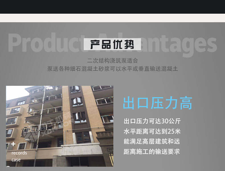 此設(shè)備是針對(duì)二次構(gòu)造專門研發(fā)的細(xì)石混凝土輸送設(shè)備,體積小,重量輕,移動(dòng)方便,是狹窄施工環(huán)境的選擇;能夠保證我們合理施工,大大減輕了我們的工作量。