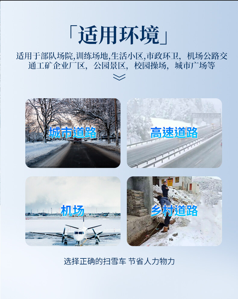 冬天如果下雪就會(huì)導(dǎo)致路面結(jié)冰,給我們的出行造成阻礙,所以我們這款暴風(fēng)雪掃地機(jī)清掃路面能夠一次清理干凈積雪,保證路面清掃之后的出行安全,采用硬度適中的毛刷不損傷標(biāo)志線,不損傷路面,這是一臺(tái)環(huán)保型除冰雪車,除雪效率非常高,更加適合路面清掃積雪使用。