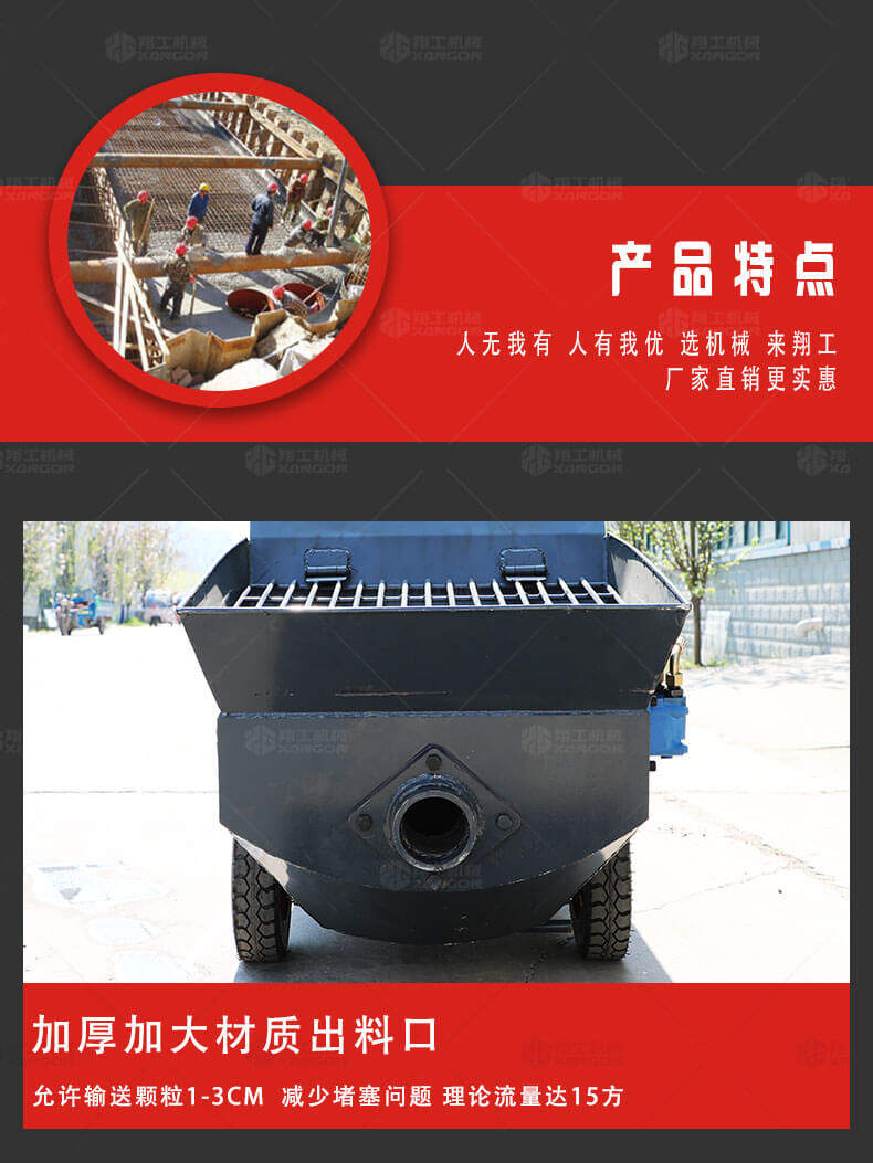 100型普通款澆筑泵優(yōu)勢多多,性能可靠,設(shè)備各個結(jié)構(gòu)生產(chǎn)制作科學(xué),電機(jī)功率大、性能穩(wěn)定、施工效率高等優(yōu)勢,使用電動澆筑泵大大提高了施工效率,降低勞動強(qiáng)度,節(jié)約人工,被廣泛應(yīng)用。是工程施工的好幫手。