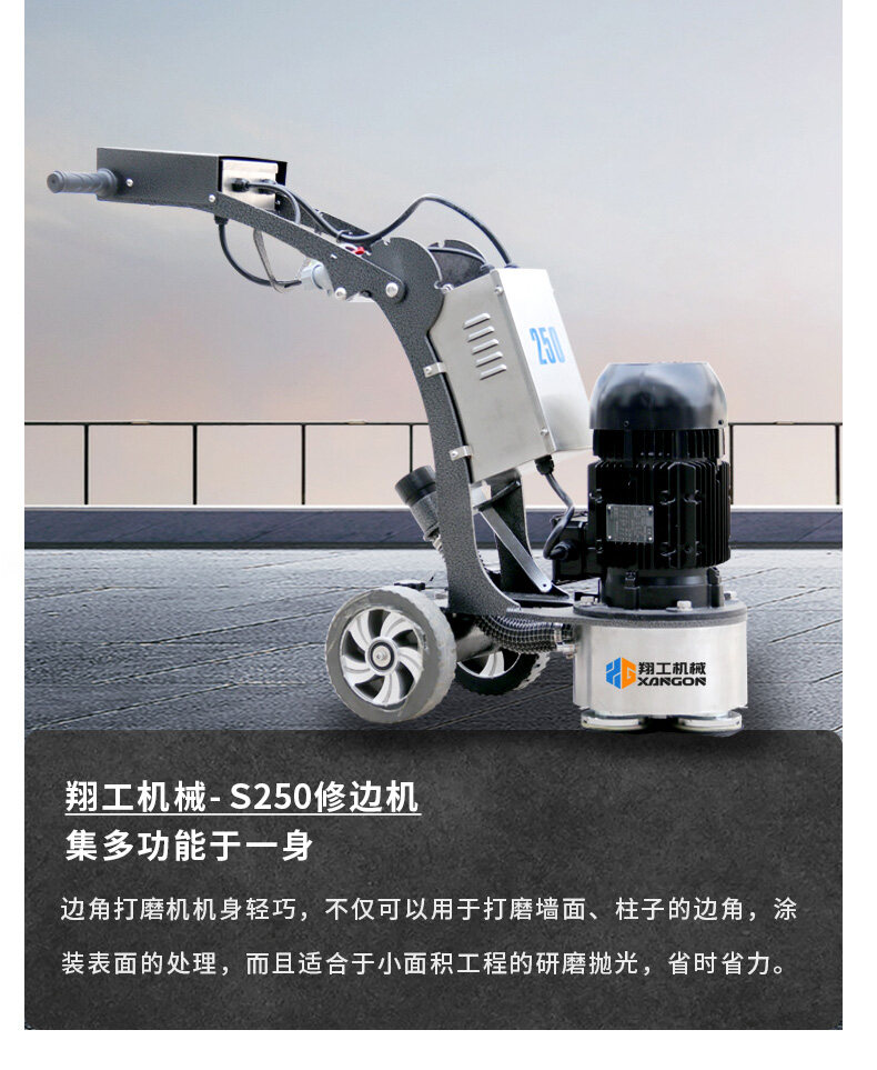 250拋光修邊機(jī)也叫混凝土地坪邊角機(jī),適合邊角、小面積打磨,機(jī)動(dòng)靈活,使用方便,下面帶大家來了解一下這款產(chǎn)品詳情。