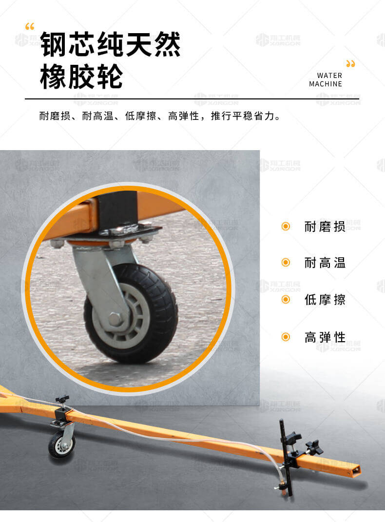 水線車是標(biāo)線施工前序工作中施劃水線放樣的專用設(shè)備。 水線是標(biāo)線施工前必不可少的工序,水線機(jī)可以替代大部分的手工放樣,降低勞動(dòng)強(qiáng)度,提高工作效率,省時(shí)省力。 本產(chǎn)品可同時(shí)劃三條基準(zhǔn)線(水線),可靈活調(diào)整水線間距;水線架和伸縮桿可折疊、拆卸,便宜運(yùn)輸。 在施工前,在所要施劃標(biāo)線的位置上需先涂劃水線,用以引導(dǎo)標(biāo)線劃線機(jī)的施劃。