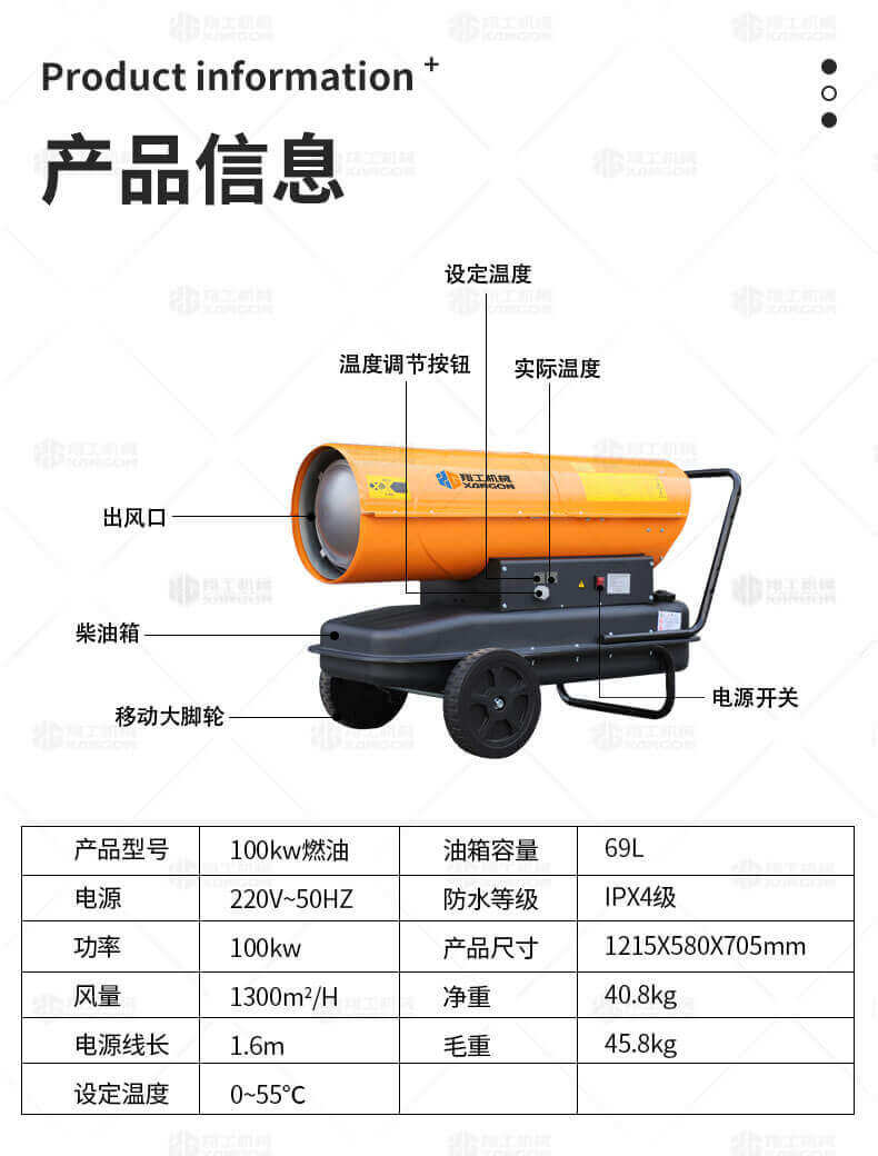 廠房、車間、養(yǎng)殖、建筑工地、辦公室、宿舍等局部取暖設(shè)施。 ☆任何需要加溫的場(chǎng)所。