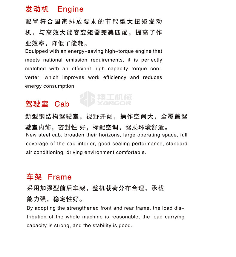 主要用于鏟裝土壤、砂石、石灰、煤炭等散狀物料,也可對(duì)礦石、硬土等作輕度鏟挖作業(yè)。換裝不同的輔助工作裝置還可進(jìn)行推土、起重和其他物料如木材的裝卸作業(yè)。在道路、特別是在高等級(jí)公路施工中,裝載機(jī)用于路基工程的填挖、瀝青混合料和水泥混凝土料場(chǎng)的集料與裝料等作業(yè)。
