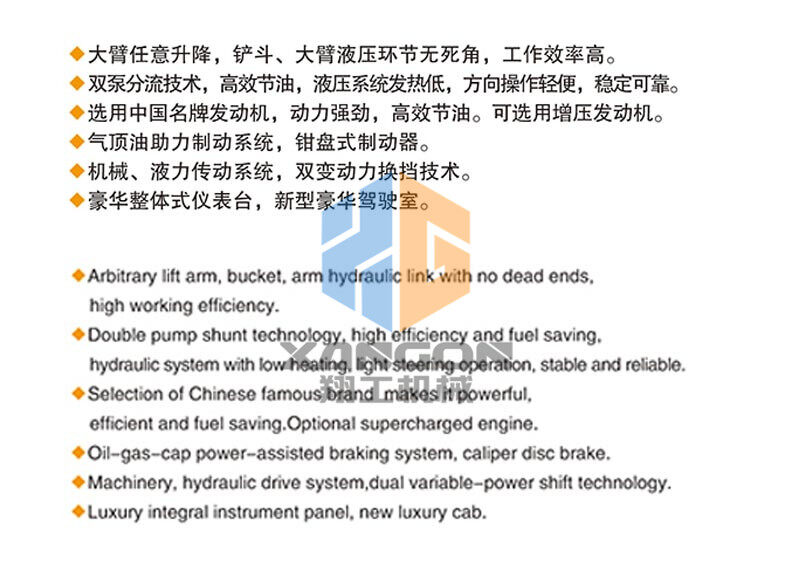 主要用于鏟裝土壤、砂石、石灰、煤炭等散狀物料,也可對礦石、硬土等作輕度鏟挖作業(yè)。換裝不同的輔助工作裝置還可進(jìn)行推土、起重和其他物料如木材的裝卸作業(yè)。在道路、特別是在高等級公路施工中,裝載機用于路基工程的填挖、瀝青混合料和水泥混凝土料場的集料與裝料等作業(yè)。