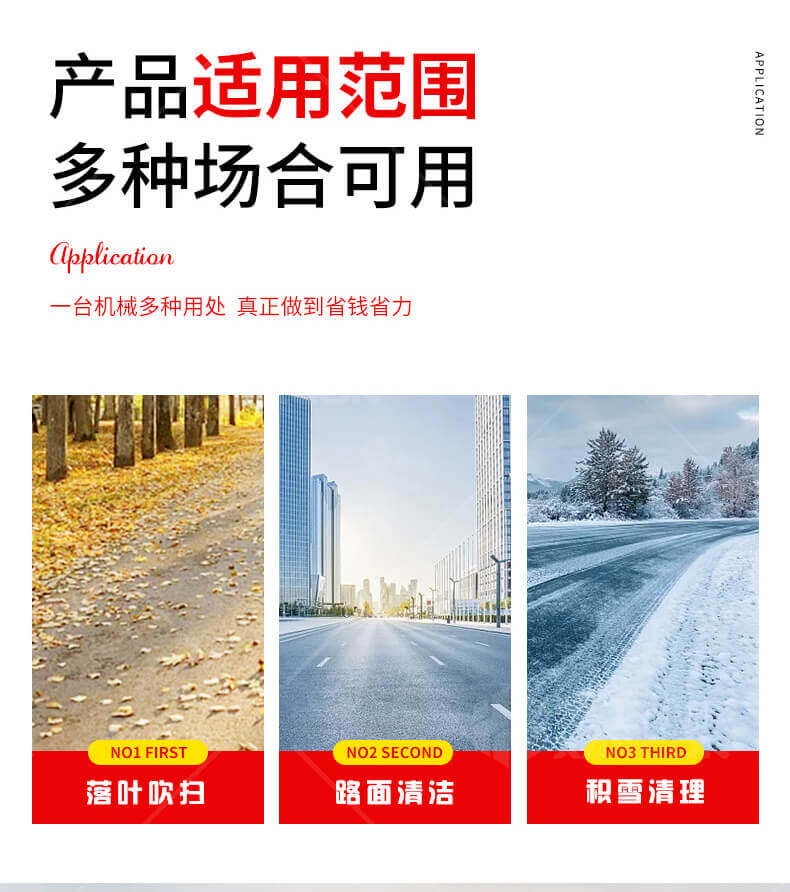 高速公路應(yīng)急車道日常清掃;各種場(chǎng)合積雪、樹葉快速吹掃;結(jié)冰路面快速撒布融雪劑;