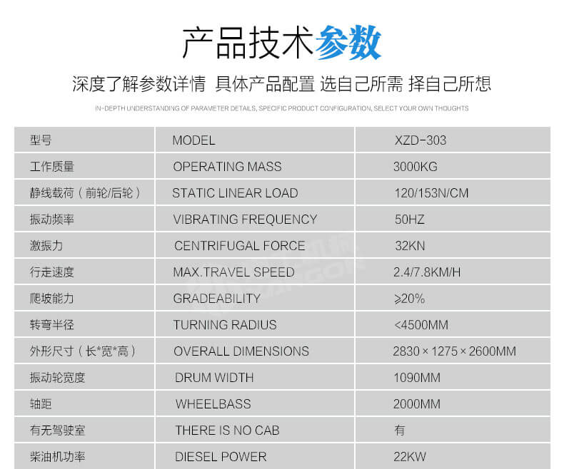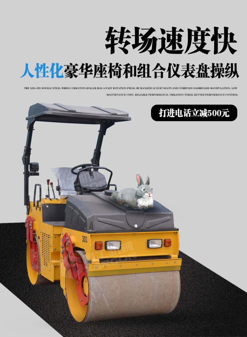 1,XZD-303雙鋼輪振動(dòng)壓路機(jī)轉(zhuǎn)場(chǎng)速度快,人性化豪華座椅和組合儀表盤(pán)操縱。維修成本低,性能可靠,配置震動(dòng)計(jì)時(shí)器,對(duì)工作績(jī)效更好地控制;