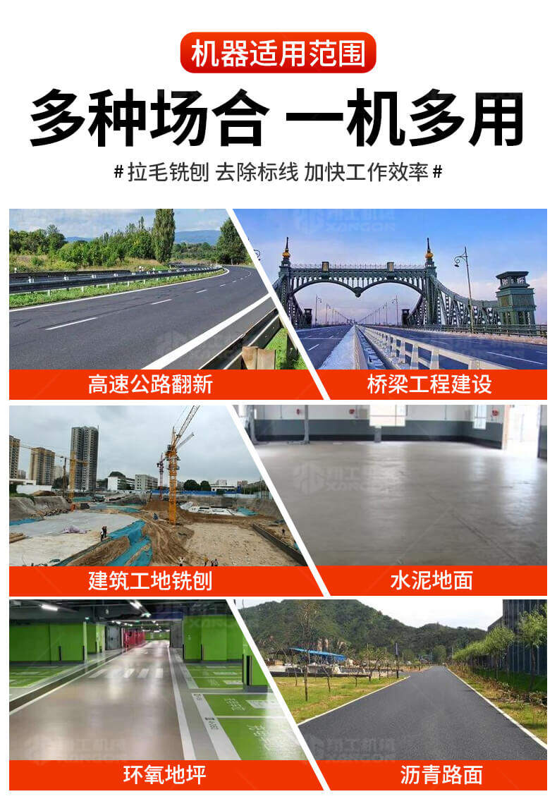 鑿毛銑刨機(jī)多種場合一機(jī)多用,拉毛銑刨去除標(biāo)線加快工作效率.