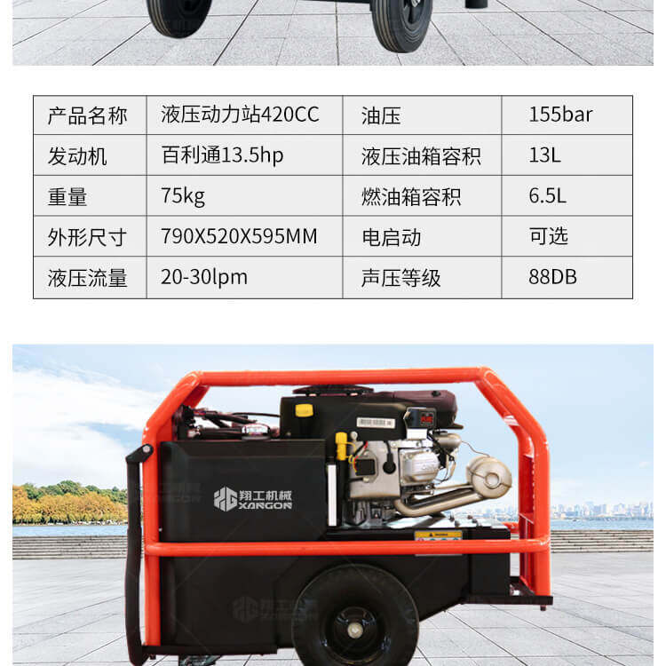 液壓動(dòng)力站可連接多種液壓工具,液壓渣漿泵,液壓破碎鎬等其他液壓設(shè)備。