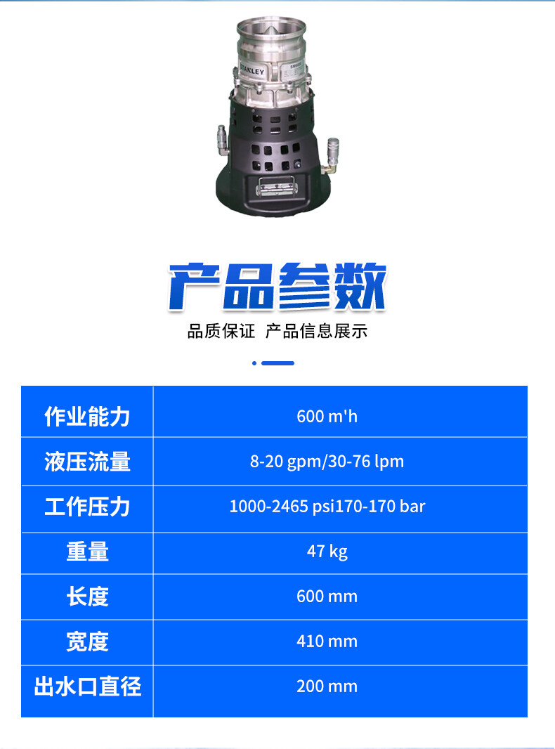 史丹利SM6600 P01是一款大排量的8寸手提式液壓水泵.可與27hp功率或以上的可移動(dòng)液壓動(dòng)力站配合組成多用途移動(dòng)泵站系統(tǒng),廣泛用于大流量供排水、應(yīng)急搶險(xiǎn)救災(zāi)排水等特殊場(chǎng)合