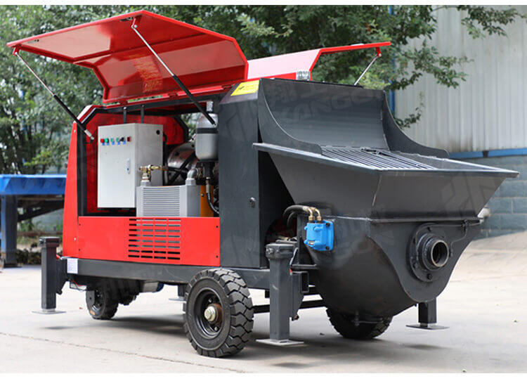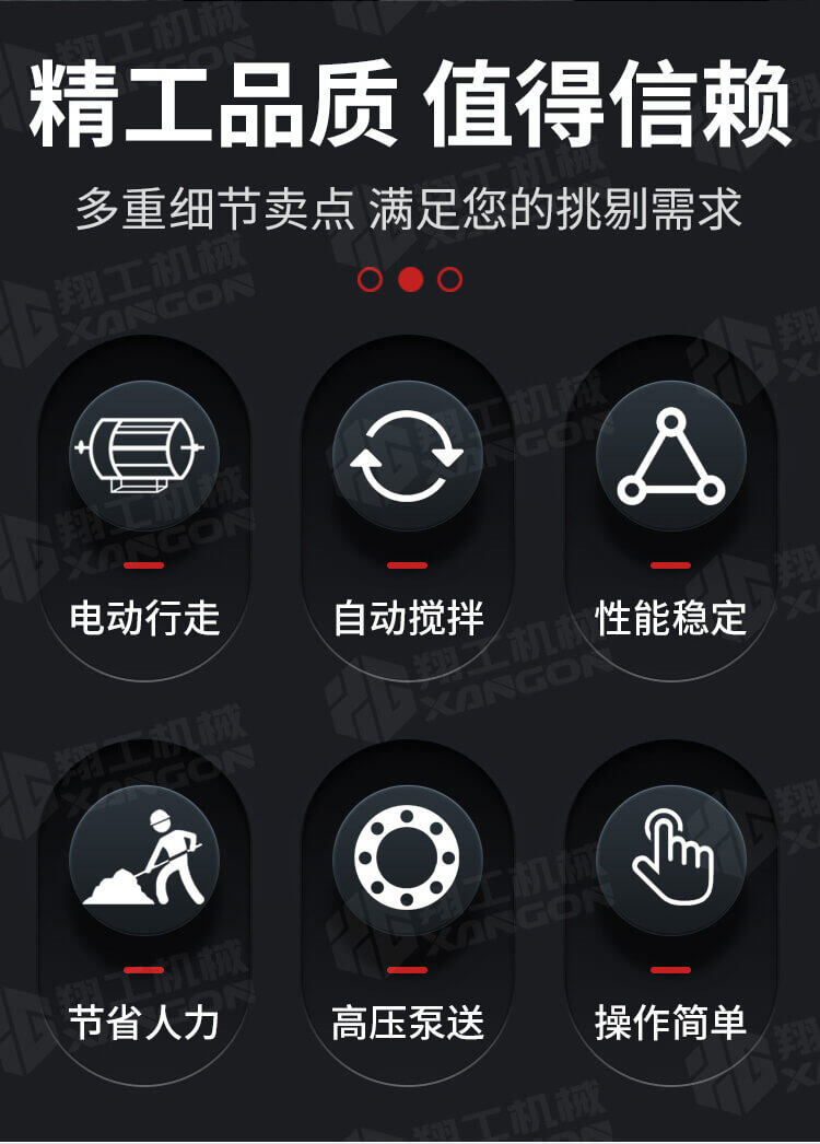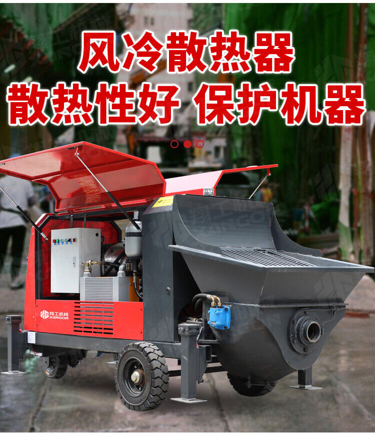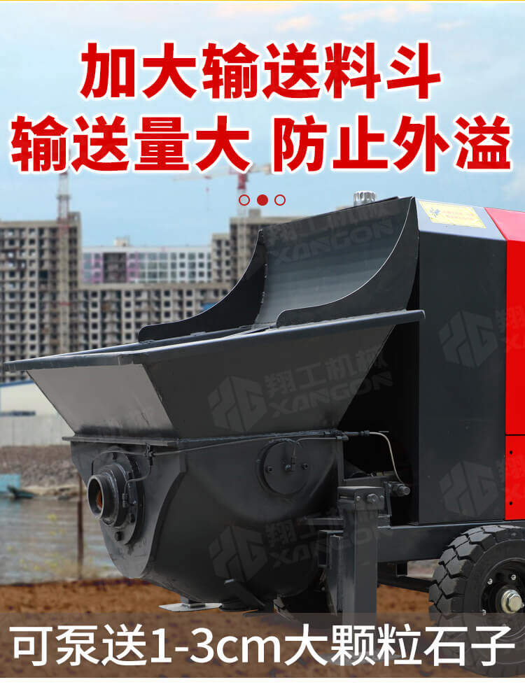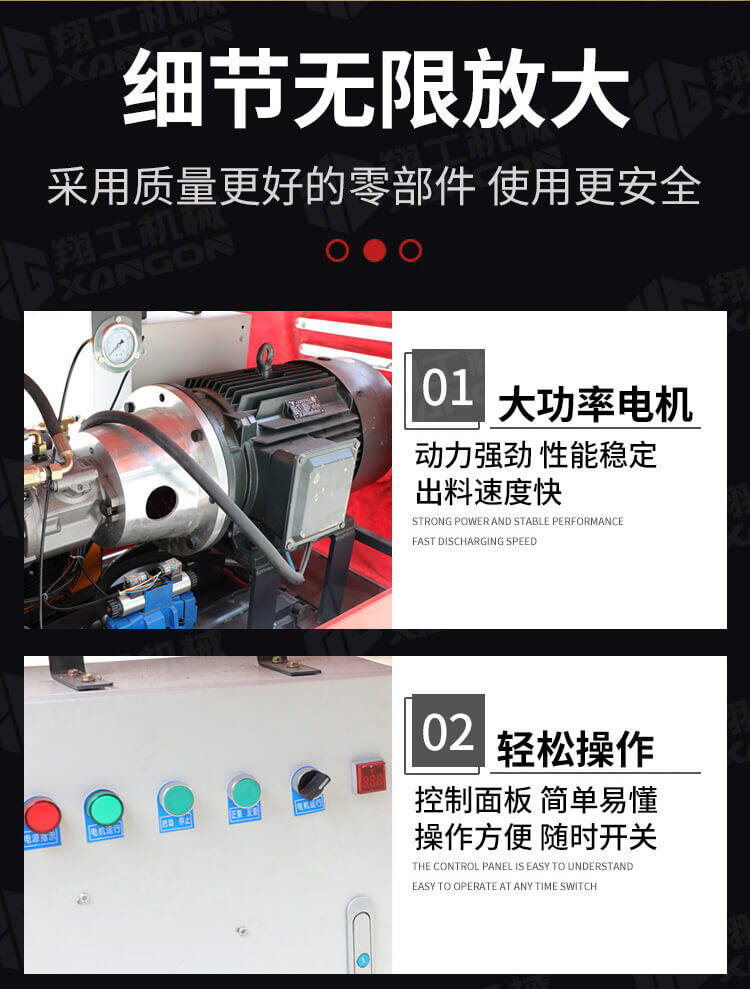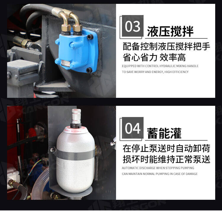 采用獨(dú)創(chuàng)的泵車尾輪驅(qū)動(dòng)系統(tǒng)輕松解決移動(dòng)時(shí)帶來(lái)的各種困難;采用雙排風(fēng)冷散熱系統(tǒng)散熱效果更好,液壓系統(tǒng)采用壓力更高,性能更穩(wěn)定的柱塞式自動(dòng)變量主油泵,采用先進(jìn)的三維立體壓模一體式自動(dòng)攪拌料斗可輸送機(jī)制砂,高標(biāo)號(hào)混凝土,有效緩解積料問(wèn)題。