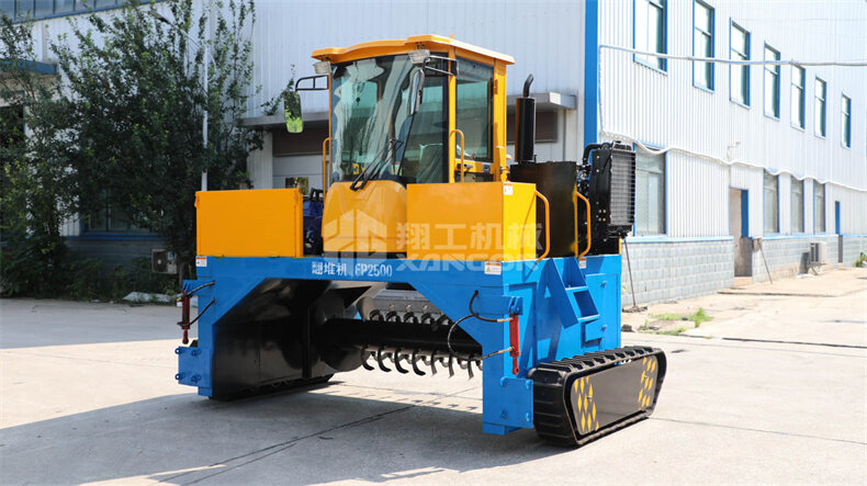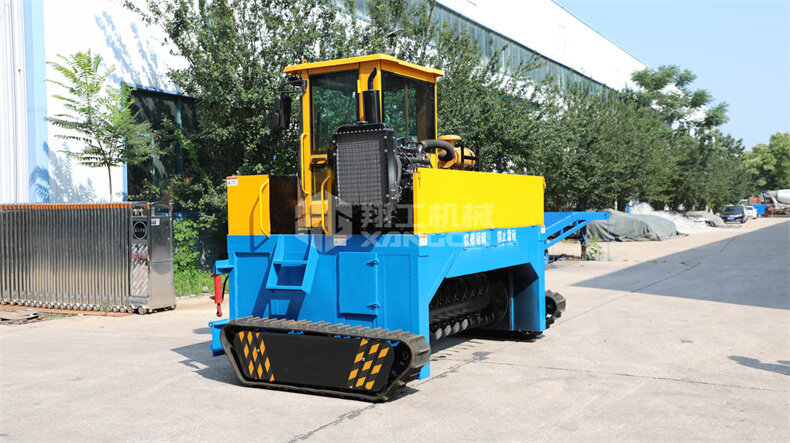 該機(jī)器配備了兩條履帶,從而做到了發(fā)酵過程中運(yùn)轉(zhuǎn)自如,達(dá)到縮短時(shí)間的作用。