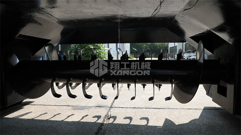 11. 翻拋能力強(qiáng),翻拋滾筒由左右兩段反向螺旋和中間直段拋齒組成,旋轉(zhuǎn)的螺旋滾筒將三角形條垛物料向中間收攏,同時(shí)隨著滾筒旋轉(zhuǎn)使物料向后翻拋,從而實(shí)現(xiàn)頂層物料和內(nèi)部物料充分混合。