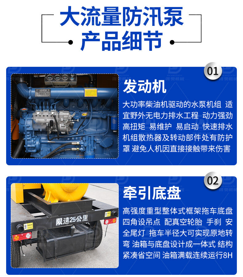 移動防汛排水泵 大口徑大流量 防洪排澇 應(yīng)急排水 型號齊全