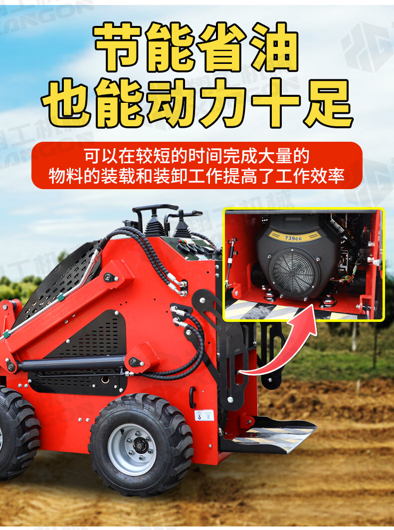 滑移裝載機(jī)液壓舉升,可以任意搭配輔具。