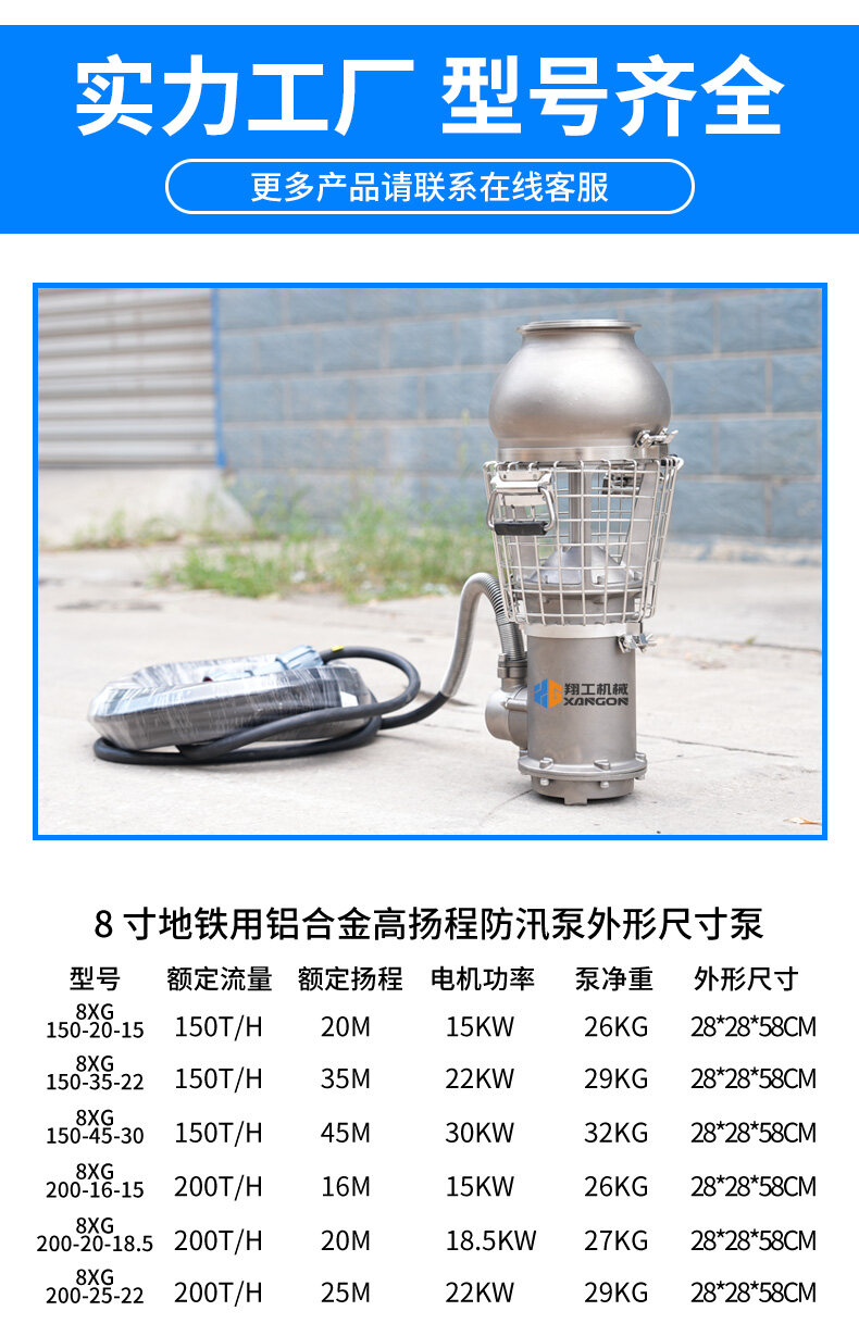 8寸大流量防汛泵,鋁合金輕量化設(shè)計(jì),高效排水,抗腐蝕性強(qiáng),適用于地鐵、隧道等防汛搶險(xiǎn),移動(dòng)便捷,應(yīng)急能力強(qiáng)。