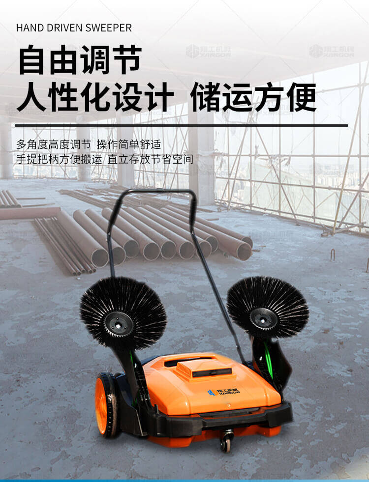 手推式掃地機(jī)能清潔房屋周邊范圍:包括小路,公路,車道和院子,能比用普通的掃把和簸箕節(jié)省5倍的時(shí)間,清掃時(shí)垃圾被迅速的收集到塵箱,簡(jiǎn)單、快速、干凈。