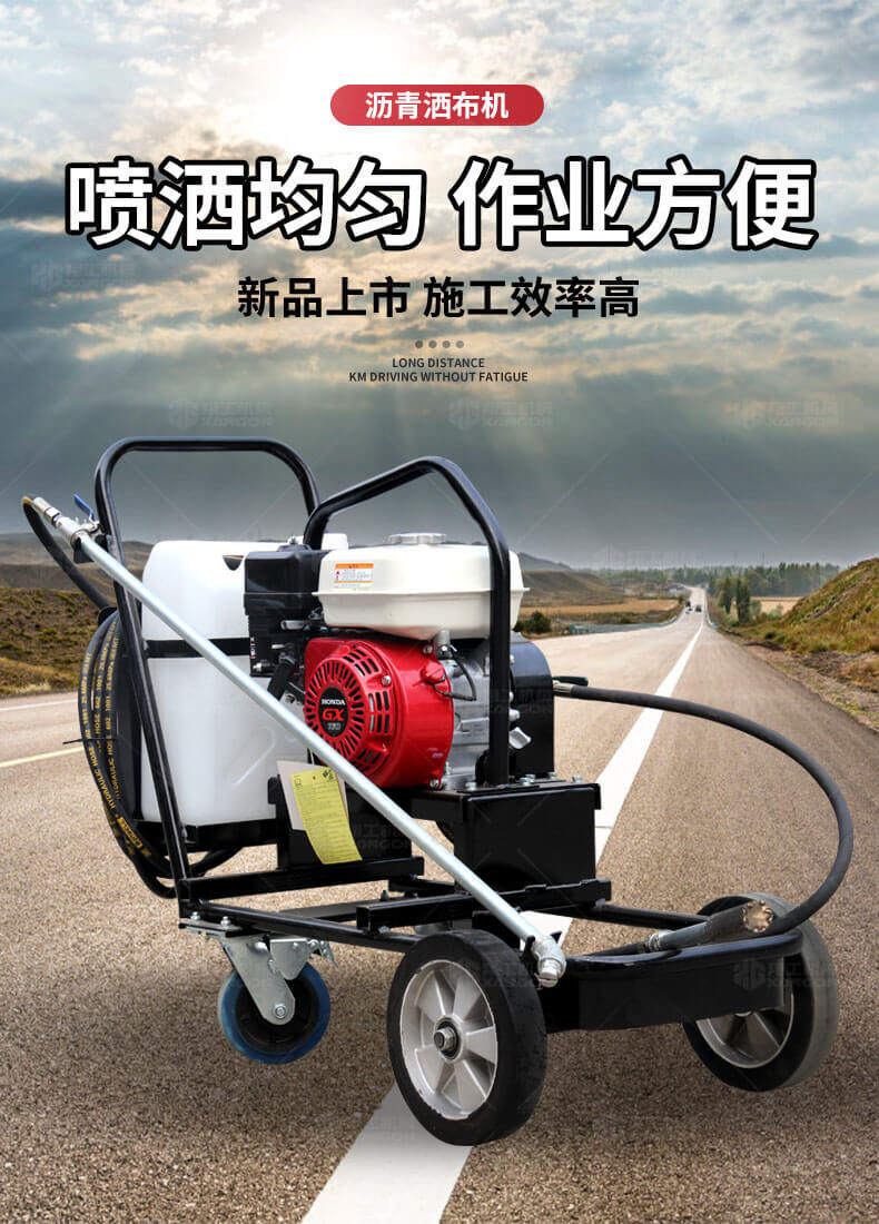 小型乳化瀝青撒布機(jī)用于修補(bǔ)瀝青道路上的坑槽,裂縫或?qū)磳⒗匣穆访孢M(jìn)行表層噴層修復(fù)翻新,由于在養(yǎng)護(hù)瀝青道路時(shí)經(jīng)常需要對(duì)路面均勻噴灑乳化瀝青或防水材料。