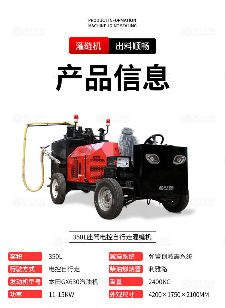 350L電行走座駕灌縫機(jī)是中型路面裂縫養(yǎng)護(hù)工程量施工佳選設(shè)備。自行走款瀝青灌縫機(jī)是我公司研發(fā)的新款灌縫機(jī)......
